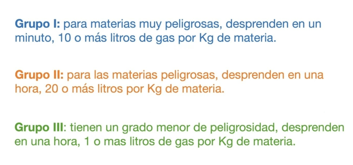 Grupos de clasificación de las materias de la clase 4.3 del ADR