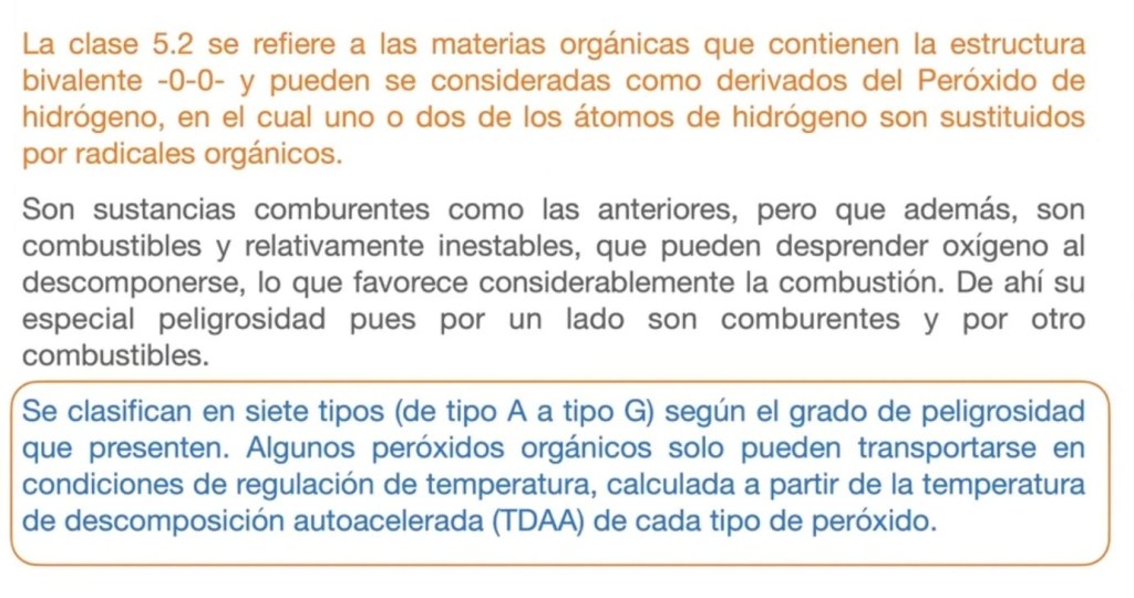 Definición y clasificación de los peróxidos orgánicos de la clase 5.2 del ADR